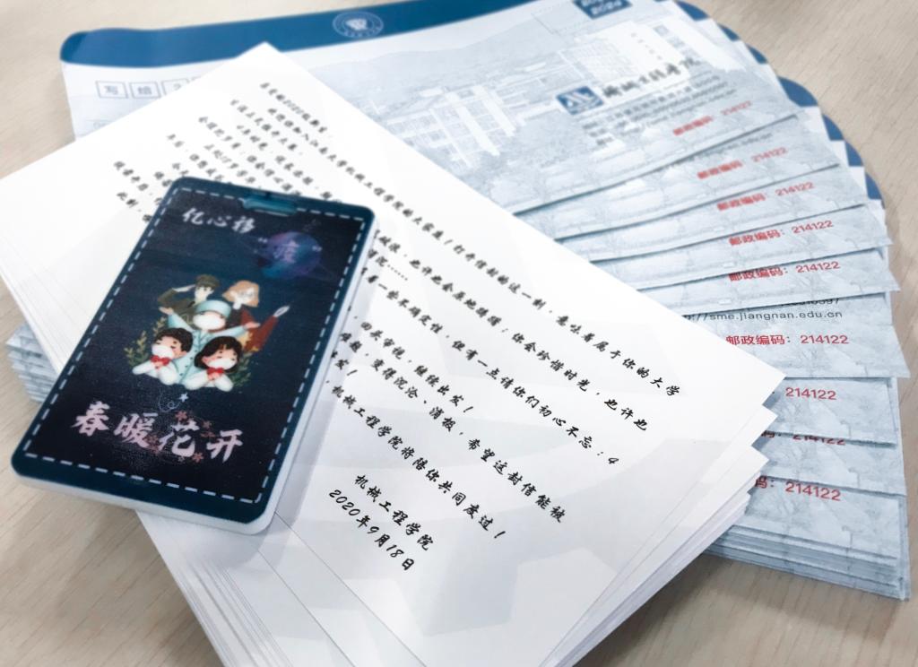 天高云淡,金风送爽。9月18日,布置一新的太阳成集团tyc33455cc迎来了2020级本科新生。为增加新生入学仪式感,学院给每位新生准备了特殊礼物。结合疫情和学校防控需要,学院特别定制防疫提示卡套,期待“亿心移疫 春暖花开”,时刻提醒学生做好个人防护措施;暖心温情、设计精美的“写给2024的一封信”,提醒新生不忘初心、砥砺前行。