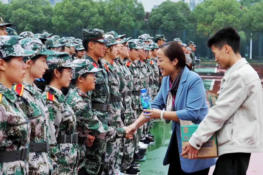 高雪梅亲切慰问了辛苦训练的教官和学生们,并表示在全球一体化和物联大发展时代的大背景下,机械学子急需健康体魄和拼搏精神来承担推进社会发展的重任,就此提出三点希望:一是要锻炼好身体,身体是革命的本钱,只有拥有健康的体魄,才能拥有无限的未来;二是要锻炼好品质,在军训的过程中,同学们要学习教官身上服从命令、奉献集体,刚正不阿的高贵品质,学习同伴们身上坚持不懈、勇夺第一的拼搏精神,培养超越自我、勇于挑战、提升能力的自省意识;三是要锻炼好精神,通过军训这一难忘经历,同学们要深种流血流汗不流泪,掉皮掉肉不掉队的精神种子,将集体主义精神、团队精神等中华民族传统美德刻入骨髓,在军训过程中提升自我。同时,她表达了对10月24日军训成果汇报演出的无比期待。