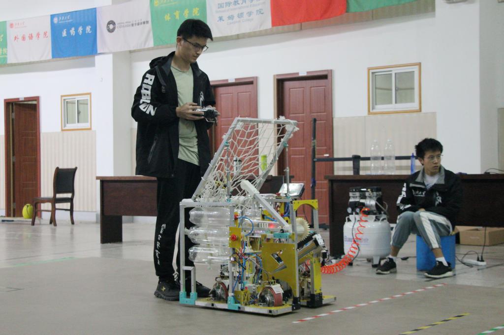 我校机器人队操作手操作踢球机器人