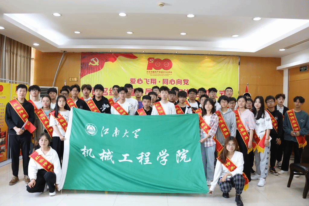 本次活动旨在招募100名青年红色宣讲员,通过开展公益活动将党的光辉事迹传播到社会各方。活动开展前期,我院学子积极踊跃报名,励志为社会服务贡献青年人的力量,最终有40名机械学子加入到宣讲员队伍中。学生代表管明乐表示:“将勇于承担宣讲员的使命,努力成为优秀的红色继承者和实践者”。为推动活动更好的开展,我院也将利用课余时间,带领机械学子走进社区、走走进养老院、走进幼儿园,讲好党的故事、革命的故事、英雄的故事......使机械学子用实际行动回馈社会。受聘仪式结束后,在广丰社区多功能厅举行了丰富多彩的文艺活动,梁溪区民政局局长方凝女士为大家做了动员报告,党员胡老师为大家讲解了党旗和党徽图案的设计历史和内涵寓意。