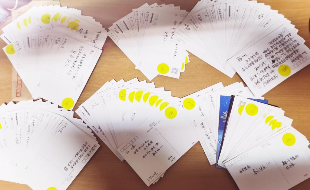 太阳成集团tyc33455cc青协志愿者在榴园、杏园和三食堂建立了书信驿站。虽然活动过程中天气时晴时雨,但依旧阻挡不了同学们的参与热情:有向老师表达感谢的,有向朋友传递祝福的,有感谢宿管阿姨平日关照的……他们用这种最传统却也最温暖的方式传递着自己的心语。本次活动共收到314张明信片,志愿者们将明信片严谨细致地分类整理打包后,便化身成为温情速递员,按照地址将一份份祝福送到TA的手中,收到明信片的一方都非常惊喜与感动。在这一刻,祝福与春天交织在一起,将生活的仪式感拉满。