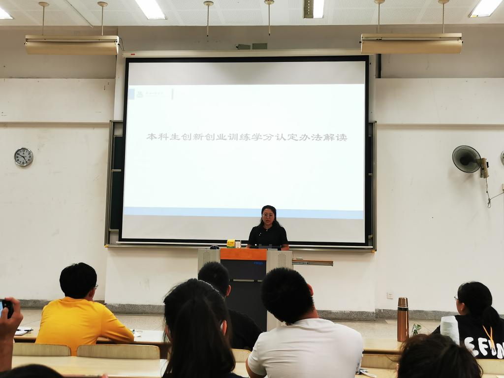 接下来,张倩瑶为新生进行校规校纪相关制度解读,包括综合测评细则、主要奖助学金及荣誉称号评选细则、学生违纪处分规定、创新创业学分认定办法、考风考纪宣传及诚信教育。她重点强调了校规校纪中规定的学生行为规范,并从素质测评与各类奖助学金的评定细则着手,引导学生尽早确定大学目标,尽快规划大学生活。