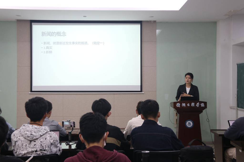 新闻写作培训由潘智琦主讲。她向同学们介绍了新闻写作的基本知识和特点,强调了校内各类常见新闻稿写作的基本思路与具体要求。结合“如何写一篇优秀的新闻”,从框架、标题、行文等角度出发,援引多篇优秀校园新闻稿作为示范,指导同学们在当前新闻写作存在的不足及改进方向。