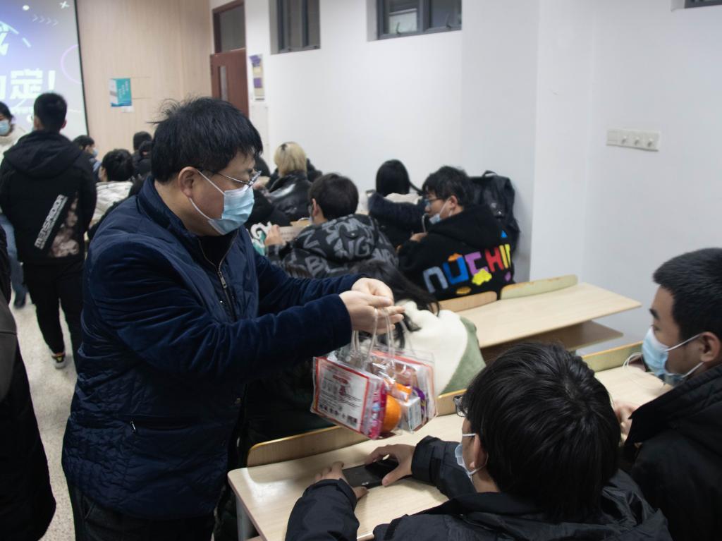 随后,在场的老师们为考研学子分发学院精心准备的考研加油包。定制礼包中装有七件暖心礼品,祝福满满:预示着“一举夺魁”的祈福笔、“牛气冲天”的牛奶,“步步登高”的面包、心想事“橙”的橙子、“棒”上有名的棒棒糖、“暖心暖意”的暖宝宝,以及承载着机械学院师生们祝福的祝福卡片。