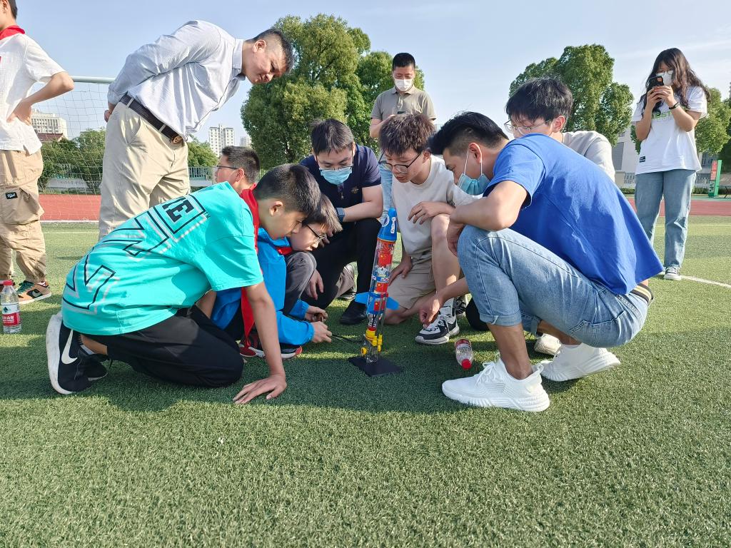 本次“送科普进小学”活动包括想象力大赛、手摇发电机制作和水火箭实验三个单元,活动搭配有趣的视频,并在动手实践中带领学生体验科学的奥秘。想象力大赛环节中,主讲人胡靖浩、王晨旭通过预先准备的科普问题与小朋友们进行互动,打开了小朋友们对科学知识的求知欲。主讲人季成睿在手摇发电机环节中,为大家介绍了电路运行的原理,组织大家动手组装,在过程中共同解决了转轴难以组装、尺寸有误差等问题,最终成功完成手摇发电实验。在难度系数更大的水火箭单元,主讲人邓铭喆介绍了水火箭的制作发射原理,并在操场展开水火箭实验,虽然遇到了因火箭漏气无法升空的难题,但通过大家齐心协力的调整,最终成功发射。火箭也带着孩子们的欢呼和期许,飞向更美好的高地。