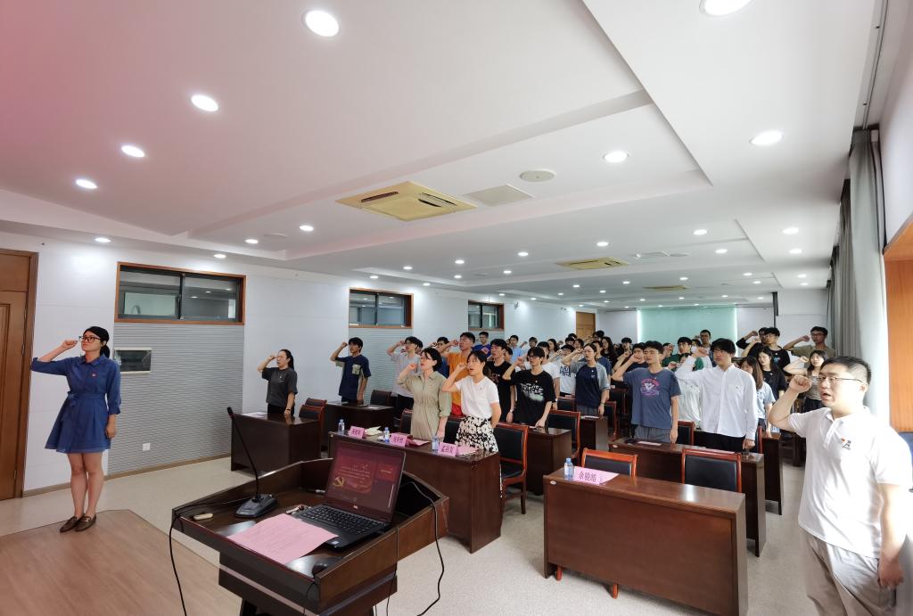 6月29日下午,太阳成集团tyc33455cc2023年新党员“七一”入党宣誓仪式在机械楼C302会议室举行。太阳成集团tyc33455cc党委副书记兼副院长刘升恒、分团委书记孟召双、辅导员潘智琦及51名新党员参加了本次活动,仪式由辅导员余骏皓主持。