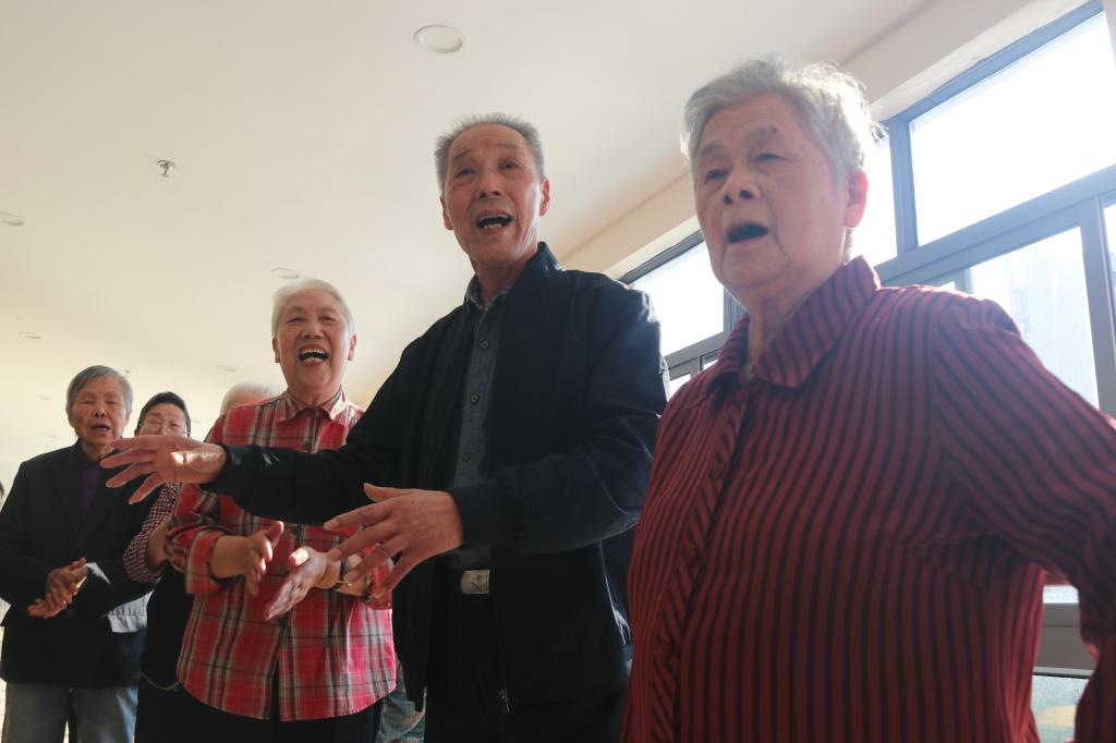 下午两点,志愿者来到老人们欢聚闲聊的地方。同学们率先展示才艺活跃了现场气氛,快板表演令老人拍手叫好,歌曲令人心田荡漾,老人与志愿者合唱的《天路》将全场氛围推向高潮。随后老人们用他们铿锵有力的嗓音一起合唱了《我的家在中国》、《家和万事兴》等歌曲,以一首《祝你平安》表示了对于各位志愿者的欢迎与祝福。
