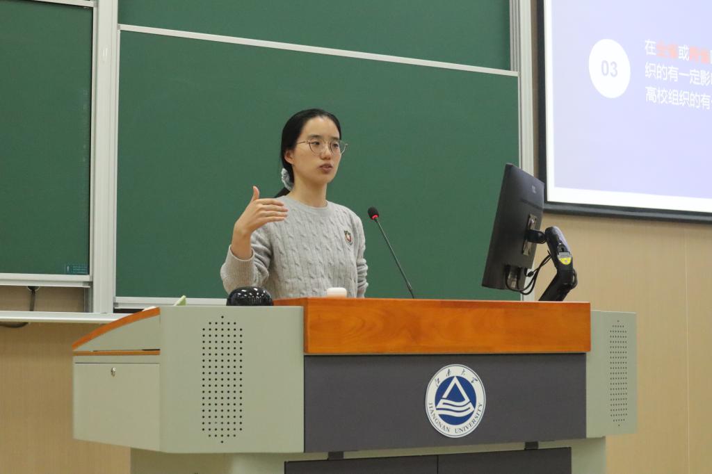 在综合测评细则解读环节,张倩瑶从基本素质、专业素质和创新与实践素质三方面为同学们详细介绍了我院综合素质测评办法,让同学们对于综合素质测评有了更清晰的认识,张倩瑶提醒同学们,综合素质测评是为了培养新时代德、智、体、美、劳全面发展的社会主义建设者和接班人,希望大家能够时刻以全面发展来严格要求自己,成为一个德才兼备的大学生。