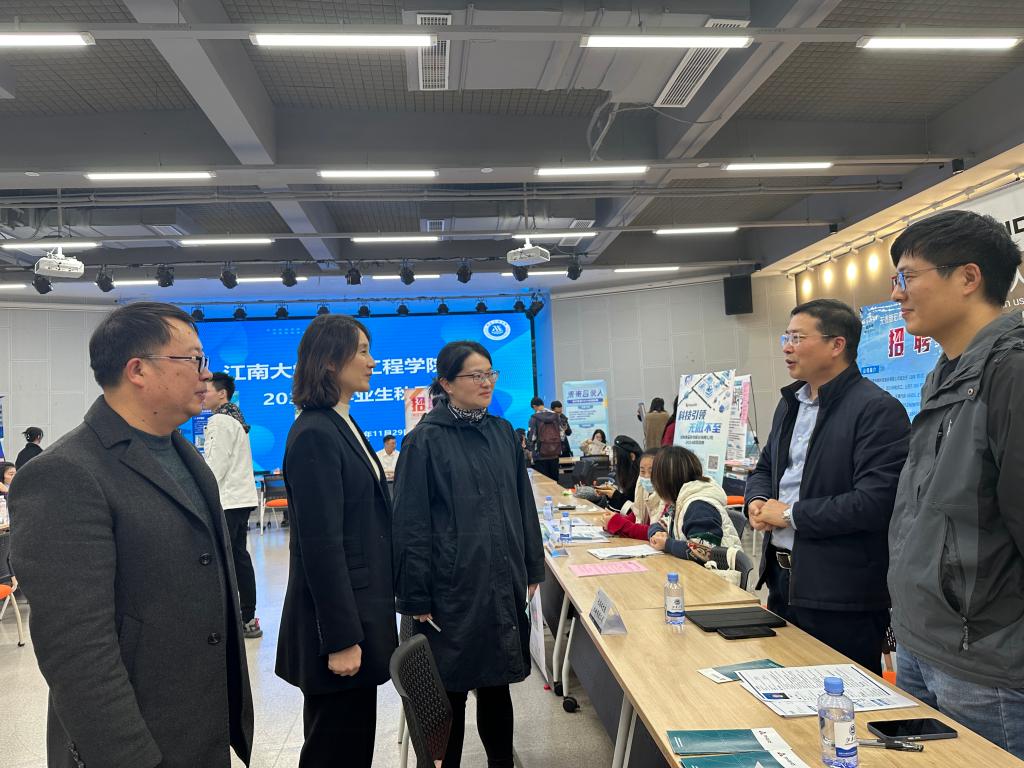 tyc33455cc太阳成集团就业指导中心主任、学生工作处副处长单筱婷,太阳成集团tyc33455cc党委副书记、副院长刘升恒,副院长钱善华,副院长王东祥来到招聘会现场,在展位前与用人单位、求职学生互动交流,进一步了解企业用人需求和学生求职诉求,鼓励毕业生树立正确择业观,主动获取就业信息,提升求职技能,把握就业机遇,尽快找到自己心仪的工作。