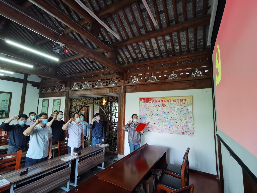 “我志愿加入中国共产党,拥护党的纲领,遵守党的章程,履行党员义务,执行党的决定……”在廉政文化交流馆,中心组成员在院党委书记高雪梅同志的带领下,面对鲜红的党旗,重温入党誓词,叩问初心、举拳明志。随后,集中观看了廉政教育视频,抄写《爱莲说》,分享学习感言等。