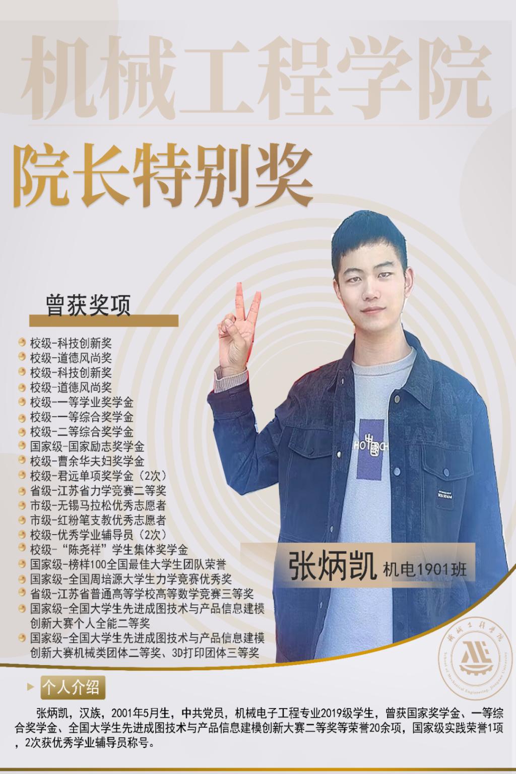 他曾获国家奖学金、“陈尧祥”学生集体奖学金、第十四届“高教杯”全国大学生先进成图技术与产品信息建模创新大赛二等奖(全校唯一)等国、省、校级荣誉20余项,获省级大创优秀结题,以一作身份发表论文、专利、软著各一项。
