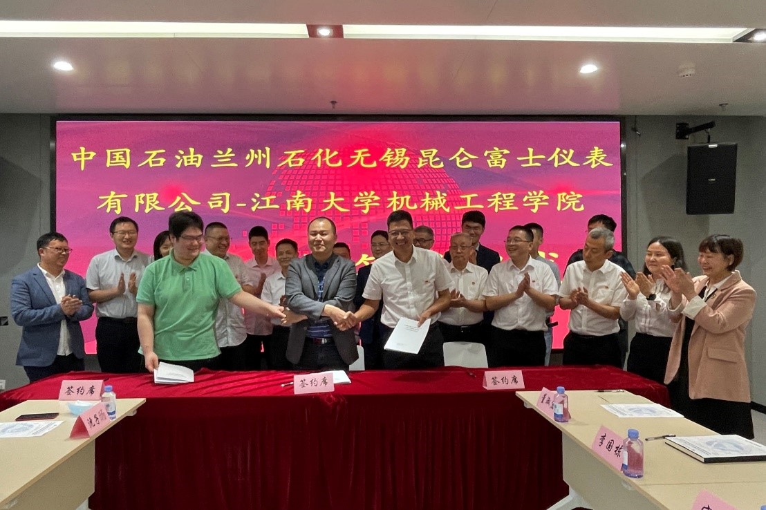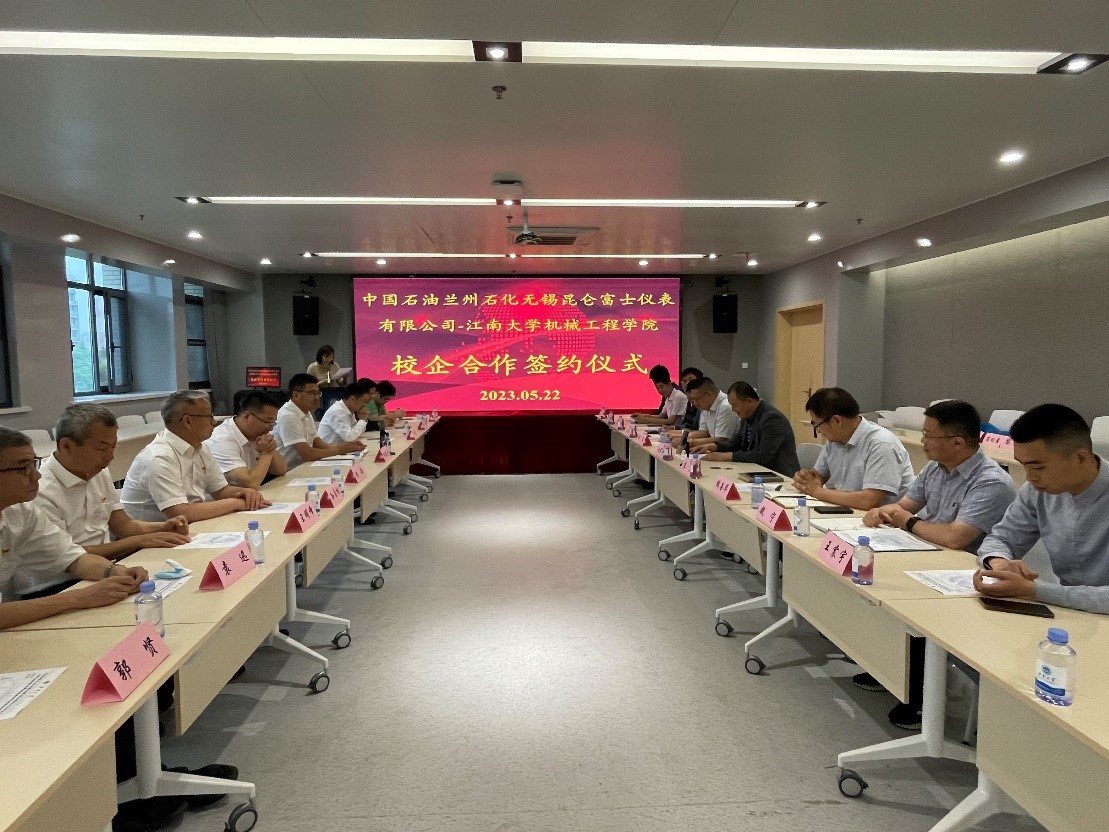 5月22日下午,太阳成集团tyc33455cc与中国石油兰州石化无锡昆仑富士仪表有限公司产学研战略合作签约仪式在先进技术研究院A302会议室举行。无锡市高新区科技局副局长李振东,中国石油兰州石化无锡昆仑富士仪表有限公司党总支书记、总经理杨德寿,太阳成集团tyc33455cc院长赵军华,太阳成集团tyc33455cc、先进技术研究院领导及相关教师出席签约仪式。签约仪式由先进技术研究院副院长李丁主持。