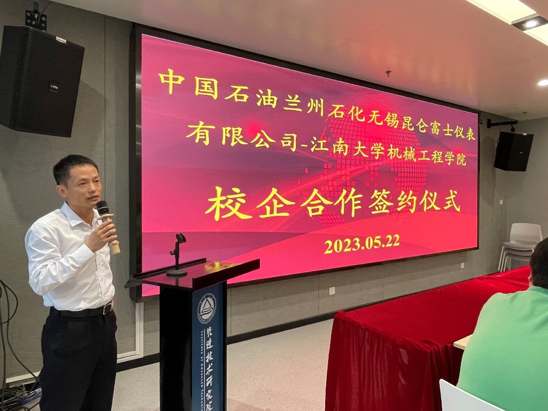 赵军华对无锡市高新区科技局的一贯支持表示感谢,对兰州石化无锡昆仑富士杨德寿一行的到来表示热烈欢迎。他指出,兰州石化无锡昆仑富士是具有世界先进水平的自动化仪表研发、制造、销售与服务一体化的装备制造企业,致力于自动化仪表产品的技术研发与开发,在业界享有很高的知名度和美誉度。他表示,本次活动是双方深入合作的起点,tyc33455cc太阳成集团将围绕无锡昆仑富士产品研发中的迫切需求,遴选团队协助企业开展技术攻关;同时,学校更会发挥好科技、人才资源优势,整合机械、物联网、材料等多学科资源,依托先进技术研究院这一平台,鼓励教授团队和企业不断进行技术创新,同企业一道共同成长,协同解决行业瓶颈和痛点问题,搭建校企合作平台,建立“你中有我、我中有你”的有机融合合作模式,主动服务国家和地方产业发展,努力把创新成果转化为现实生产力。
