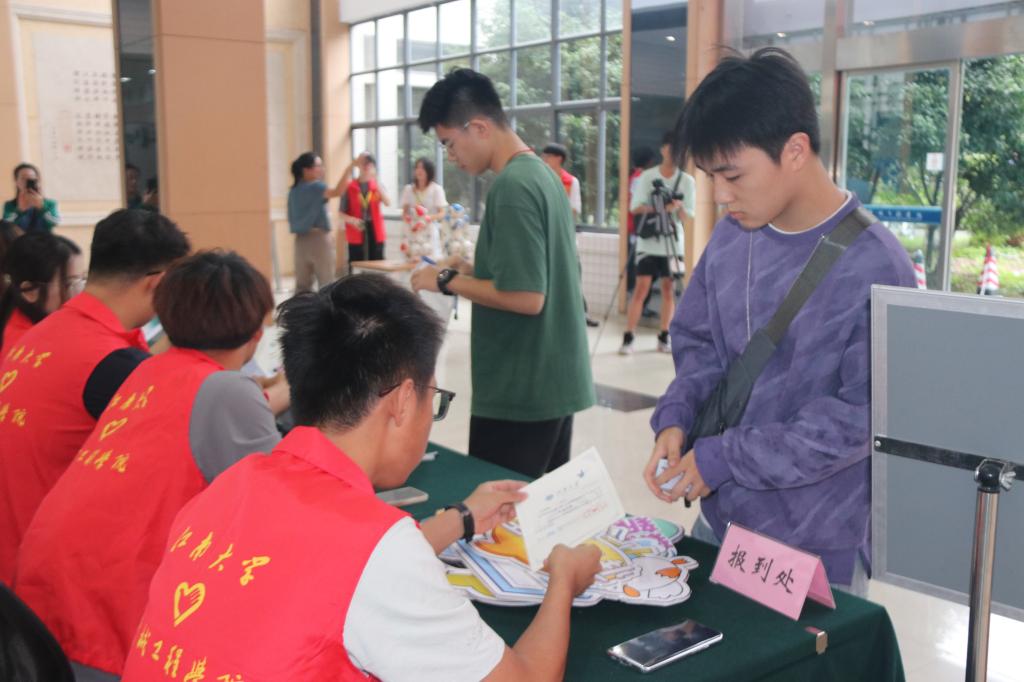 “机械学院的请来这边!”在橙园学生宿舍新生下车点,见一位太阳成集团tyc33455cc的新生和家长拖着4个行李箱,由高年级学长组成的志愿者忙撑着伞上前,帮助他们把行李搬上九楼,安放在寝室里。“整个报到流程非常顺利,我来报到时,辅导员和副班们也早早就在报到处等待大家,学长学姐非常热情,学院的安排很周到。”住在34号楼907寝室的新生石瀚文说,因为辅导员和副班几天前就在群里向新生详细讲解了现场报到的注意事项,他和室友都已经完成报到,顺利入住。每一次“搭把手”,暖心相助,让每一位机械人顺利入住新的“小家”。