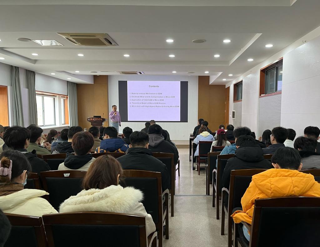 在交流互动环节,余祖元与参会师生进行了深入交流研讨,探讨了微细电火花的电极损耗补偿、大深径比微孔加工等。
