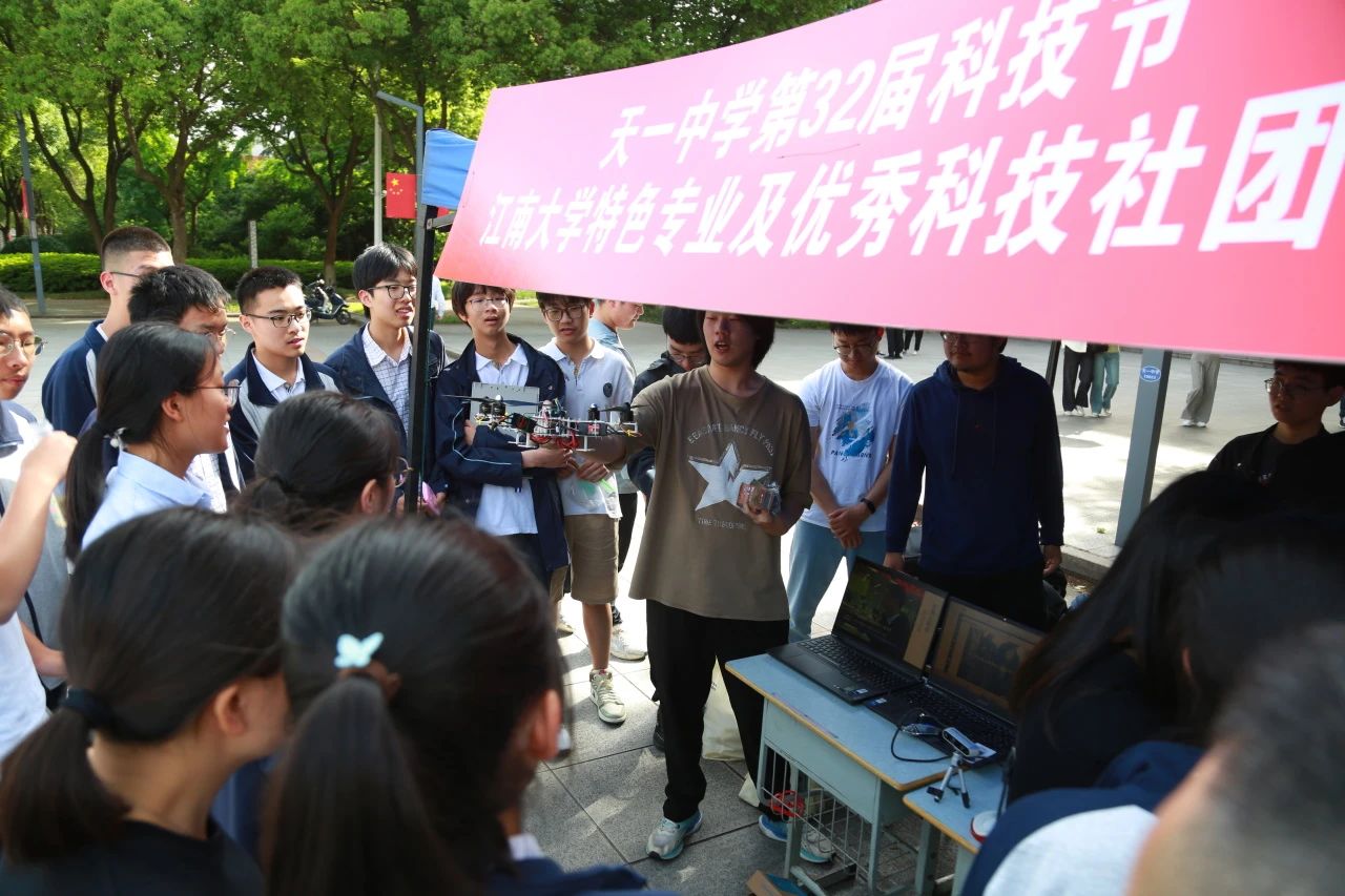 5月12日下午,在江苏省天一中学举办的第32届科技节上,太阳成集团tyc33455cc学生受邀参加“高校特色专业及优秀科技社团展示”活动。活动中,荣获第十届江苏省大学生机械设计大赛兴农机械赛道一等奖的作品《“粒粒有数”多功能豆类播种机》、二等奖作品《钳剪式智能辣椒采摘机器人》,君远学院的NAO人形机器人、哨兵小车、自制无人机悉数登场。