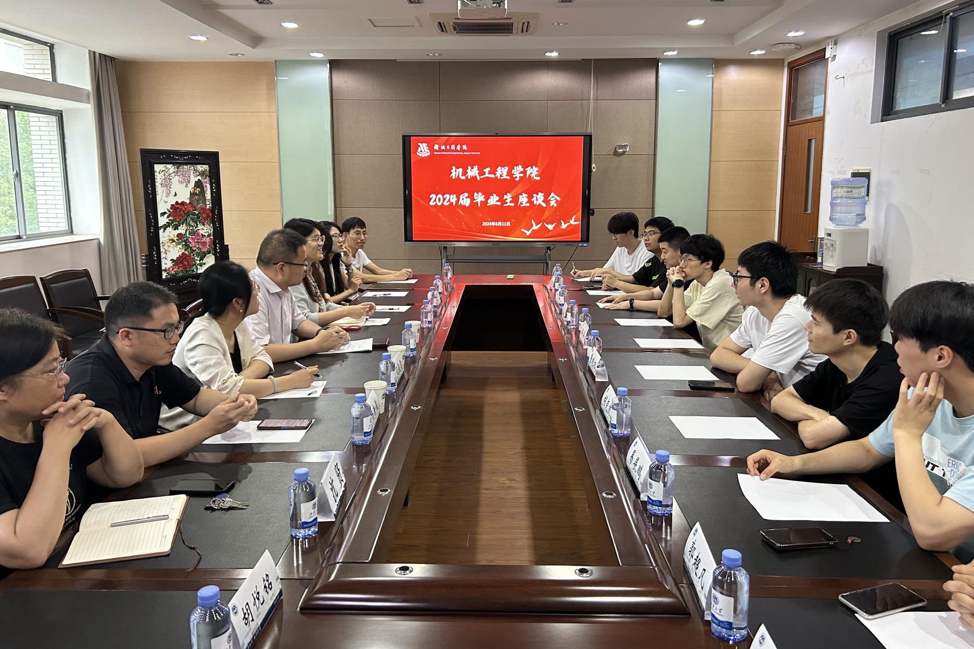 6月21日下午,太阳成集团tyc33455cc于学院C310会议室召开2024届毕业生座谈会。学院副院长钱善华,机械设计与制造系主任闫俊霞,过程装备与控制工程系主任杨新俊,教务办沈贤,学工办副主任、毕业年级辅导员潘智琦与毕业生代表参会。