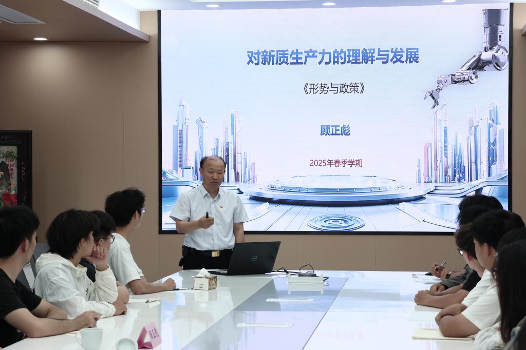 顾正彪从“新质生产力的内涵与特征”“新质生产力对机械学科的赋能”“青年学子的责任与担当”三个维度展开授课。他指出,新质生产力是以科技创新为核心驱动力的生产力,具有创新性、数字化、绿色化等显著特征,是推动高质量发展的重要引擎。结合汽车产业共享化、医疗领域AI赋能、食品行业创新等多个产业变革实践案例,他深入分析了新质生产力在智能制造、高端装备等领域的应用前景,强调机械专业学子要立足学科前沿,夯实专业基础,培养创新思维,在服务国家战略需求中找准自身定位。