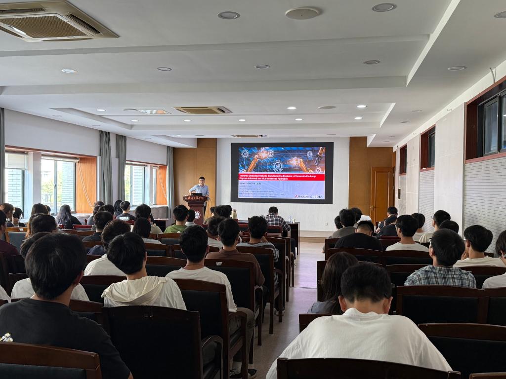 10月17日,“机缘大讲堂”系列学术讲座第二十六讲在机械楼C302会议室顺利举行。香港理工大学郑湃副教授应邀来我院访问交流,并作了题为《迈向具身机器人制造系统:一种基于物理信息与视觉语言模型的人在环方法》的学术报告。报告由太阳成集团tyc33455cc吉卫喜教授主持,学院师生代表100余人聆听了报告。