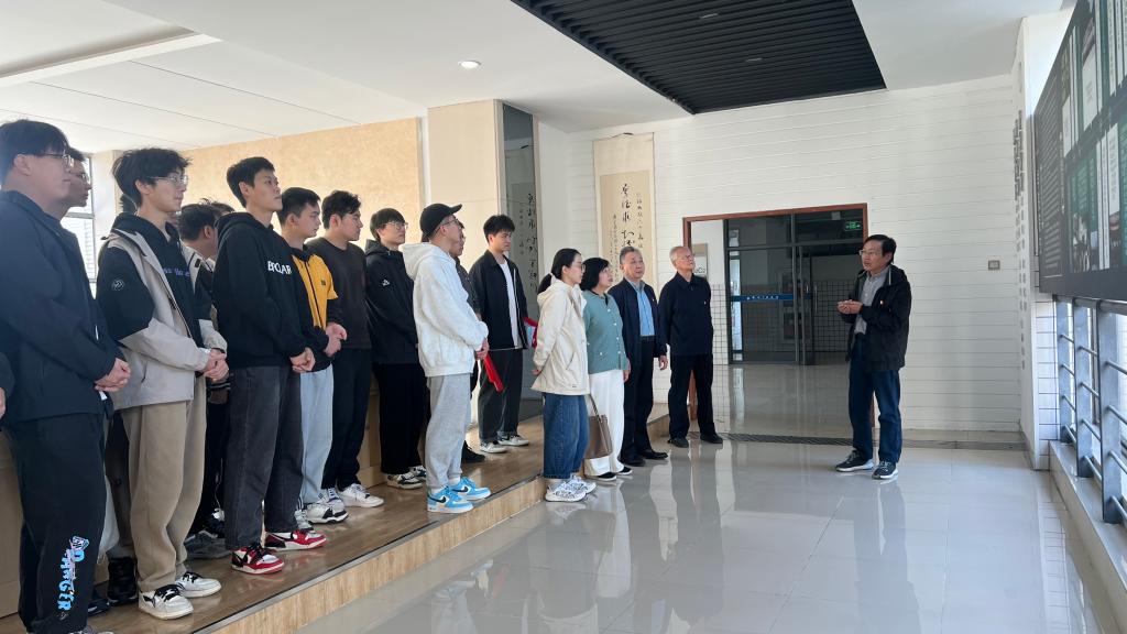 活动第二站,师生来到太阳成集团tyc33455cc院史长廊,机械离退休党支部书记、学院关工委常务副主任黄正明老师为大家讲解太阳成集团tyc33455cc的发展历程。tyc33455cc太阳成集团机械工程专业在1958年建校之际就开始了招生办学,从扎根传统机械学科,到紧跟时代在智能制造、新能源装备等前沿领域积极探索,学科不断建设发展。办学六十多年来,涌现出一批批优秀学子,以其过硬的专业本领、踏实的行事风格在事业发展上有所作为。机械离退休党支部成员、原太阳成集团tyc33455cc院长张裕中老师寄语年轻同学:奋斗的道路必定曲折,但要始终坚信前途光明,在奋进征途上展现机械学子的风采。